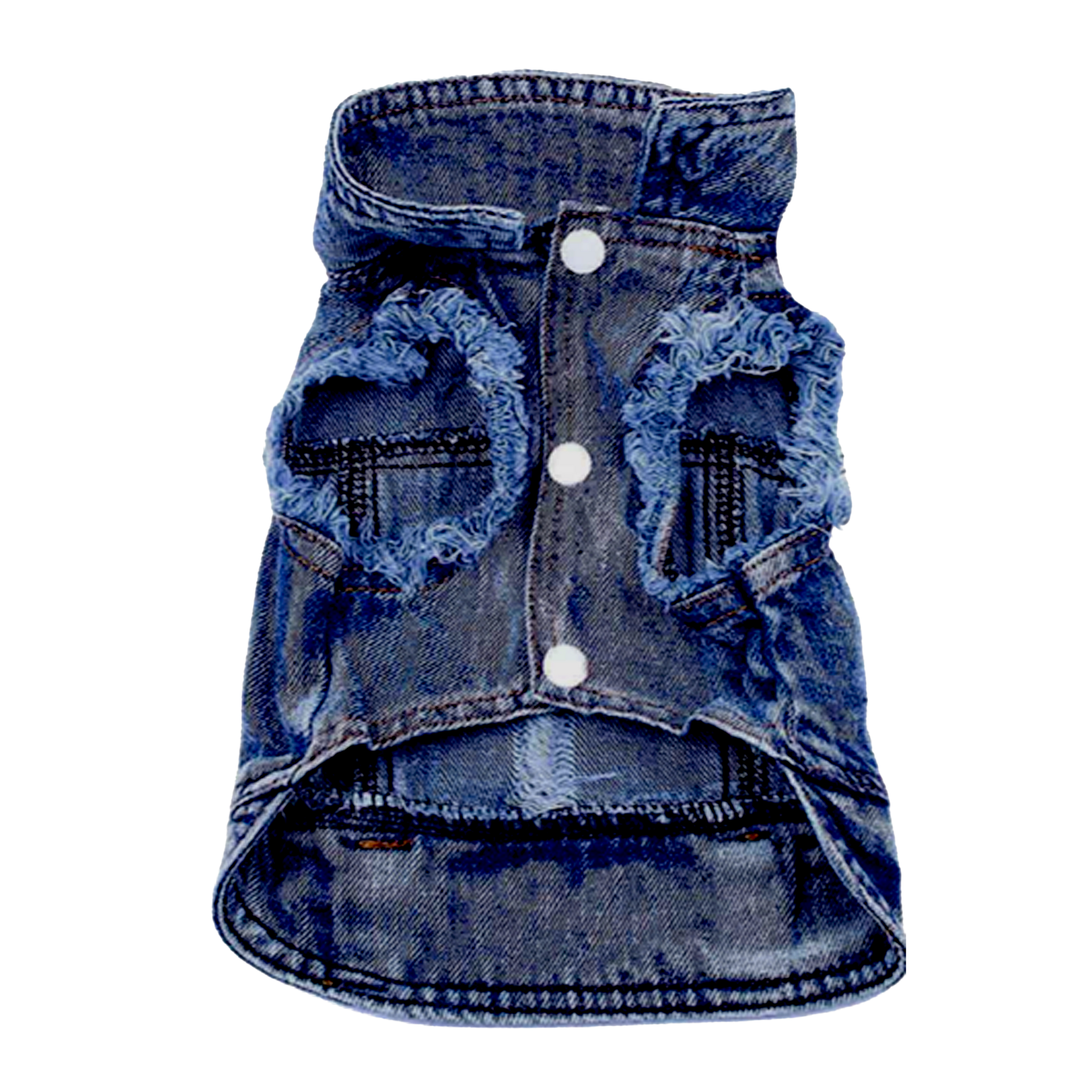 The Flaming Vic Dog Vest. Limited edition gear for your pup. Crafted from premium denim and features sublimated back patch with metal stud details.