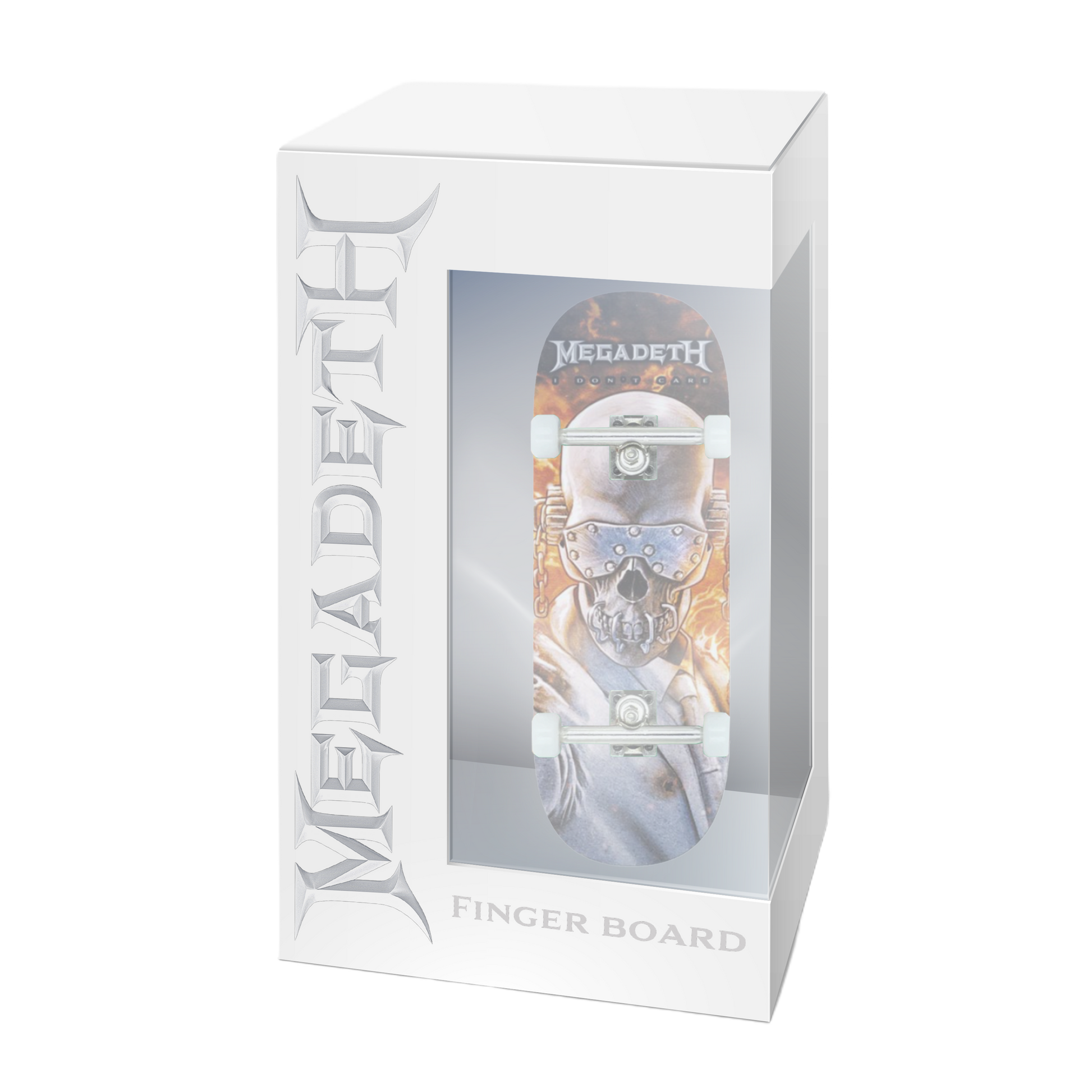 The I Don't Care Fingerboard. Featuring artwork from Megadeth's latest single release, I Don’t Care, this miniature deck is constructed from five-layer maple wood and precision hardware.